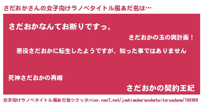 | 男性向けラノベタイトル風あだ名 | 『この素晴らしい世界にさだおかを!』 |