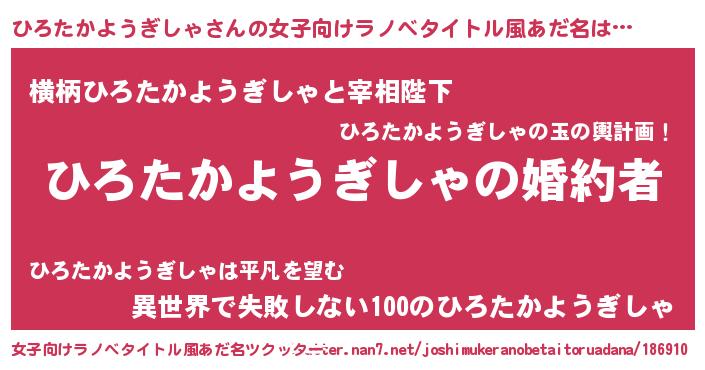 | 胡散臭い通販商品みたいなあだ名 | 『運命の人と巡り会える高級そうな壺…その名も「ひろたかようぎしゃ」』 |