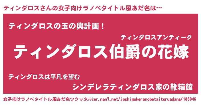 | 意味不明あだ名 | 『ティンダロスフォーエバー』 |