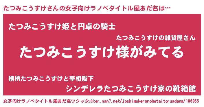 | 男性向けラノベタイトル風あだ名 | 『たつみこうすけの嫁は女の子じゃないと思った?』 |