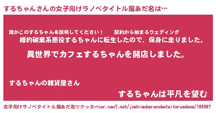 | 男性向けラノベタイトル風あだ名 | 『誰もが恐れるあのするちゃんが、ぼくの専属メイドになるようです。』 |