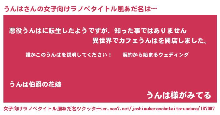 | 男性向けラノベタイトル風あだ名 | 『ウンハアートオンライン』 |