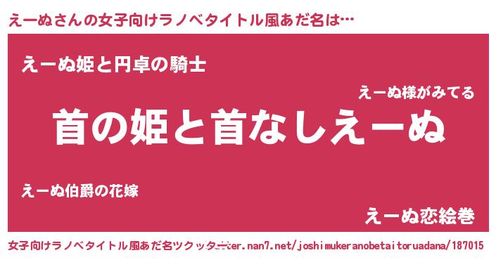 | 男性向けラノベタイトル風あだ名 | 『はたらくえーぬさま!』『えーぬの憂鬱』 |
