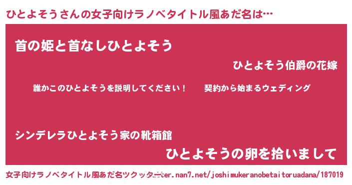 | 胡散臭い通販商品みたいなあだ名 | 『億万長者になれる水晶球…その名も「ひとよそう」』 |