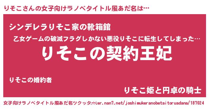 | 胡散臭い通販商品みたいなあだ名 | 『来世でも幸せになれる健康食品…その名も「りそこ」』 |