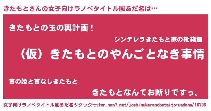 | 男性向けラノベタイトル風あだ名 | 『きたもとの憂鬱』 |