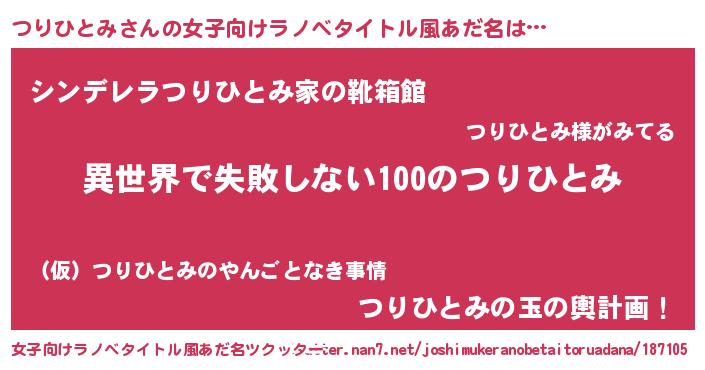 | 男性向けラノベタイトル風あだ名 | 『つりひとみという概念が存在しない退屈な世界 』 |