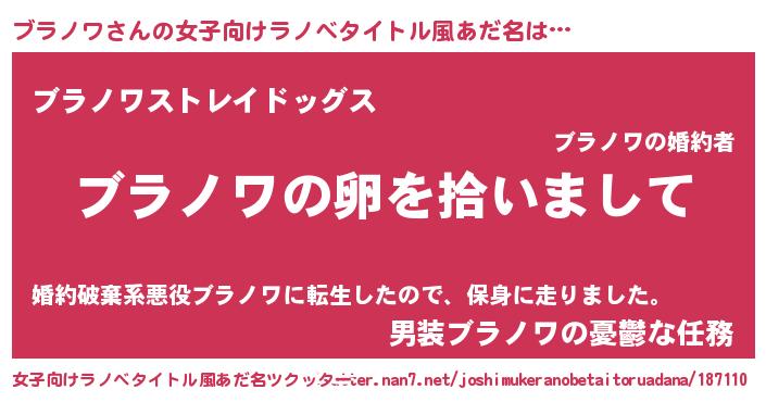 | 男性向けラノベタイトル風あだ名 | 『ダンジョンにブラノワを求めるのは間違っているだろうか』 |