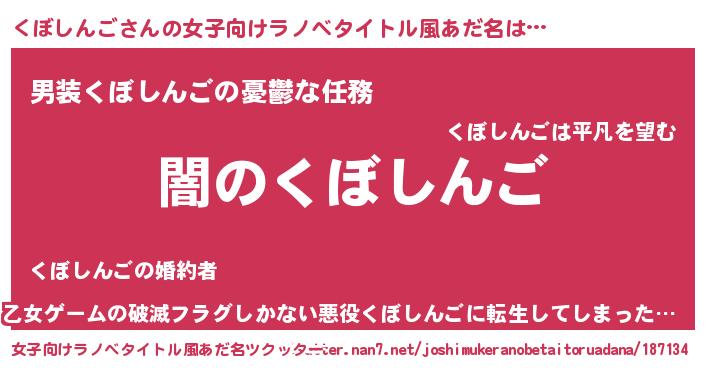 | 男性向けラノベタイトル風あだ名 | 『Re:くぼしんごから始める異世界生活』 |
