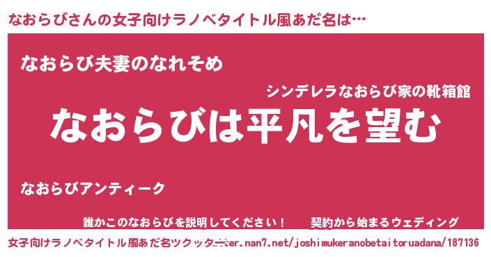 | 男性向けラノベタイトル風あだ名 | 『ダンジョンになおらびを求めるのは間違っているだろうか』 |