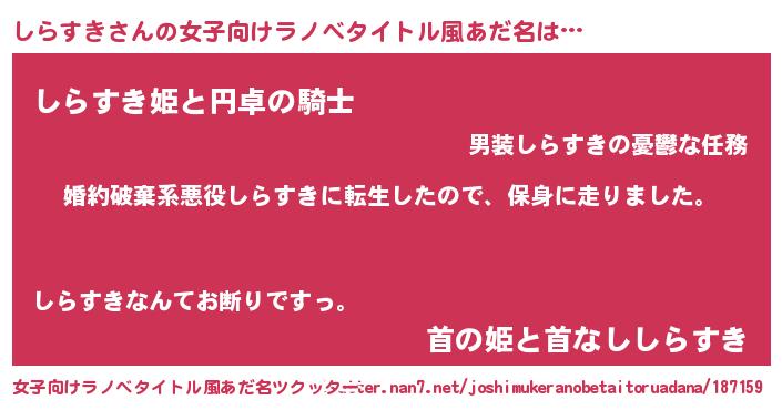 | 男性向けラノベタイトル風あだ名 | 『転生したらしらすきだった件』 |