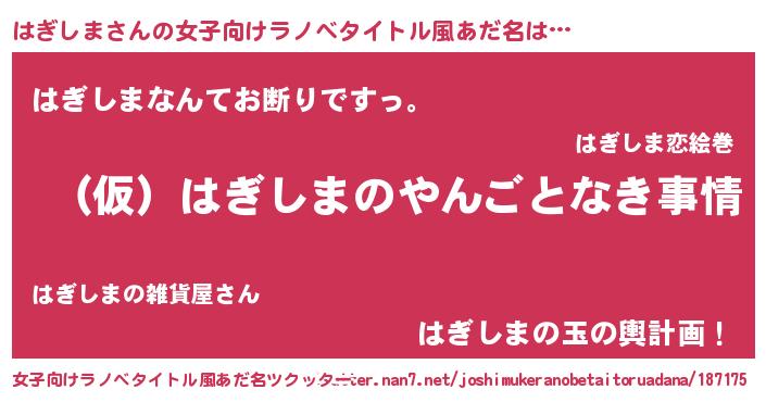 | 胡散臭い通販商品みたいなあだ名 | 『必ず成功する水晶球…その名も「はぎしま」』 |