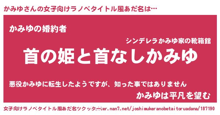 | 意味不明あだ名 | 『かみゆフォーエバー』『ペロリンかみゆ』 |