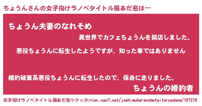 | 意味不明あだ名 | 『住所不定無職ちょうん(89歳)』 |