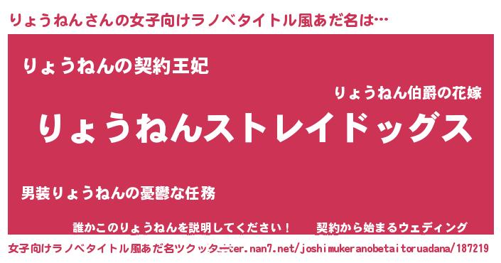 | 意味不明あだ名 | 『自称りょうねん』『永久保存りょうねん』 |