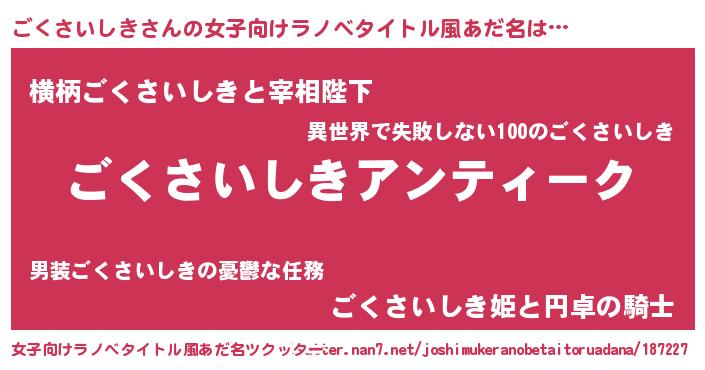 | 肩書あだ名 | 『ごくさいしき閣下』『ごくさいしき社長』 |
