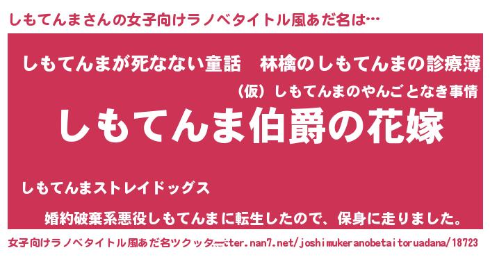 | 男性向けラノベタイトル風あだ名 | 『やはりしもてんまの青春ラブコメはまちがっている 』 |