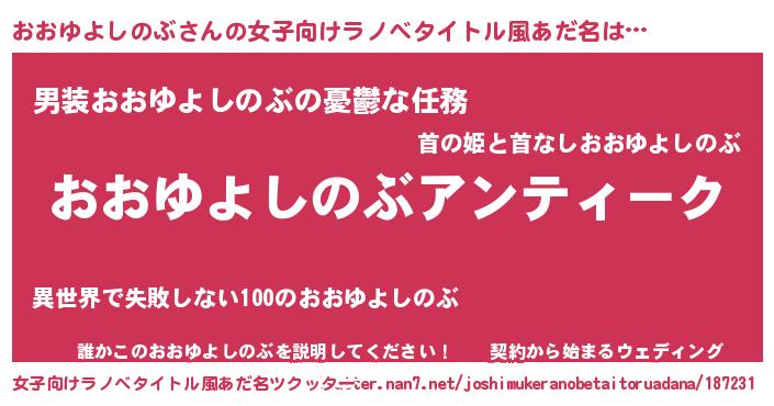 | 意味不明あだ名 | 『自称おおゆよしのぶ』 |
