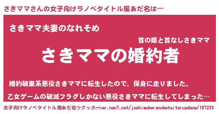 | 胡散臭い通販商品みたいなあだ名 | 『運命の人と巡り会える高級そうな壺…その名も「さきママ」』 |