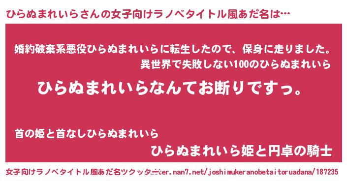 | 胡散臭い通販商品みたいなあだ名 | 『ガンによく効く高麗人参…その名も「ひらぬまれいら」』 |