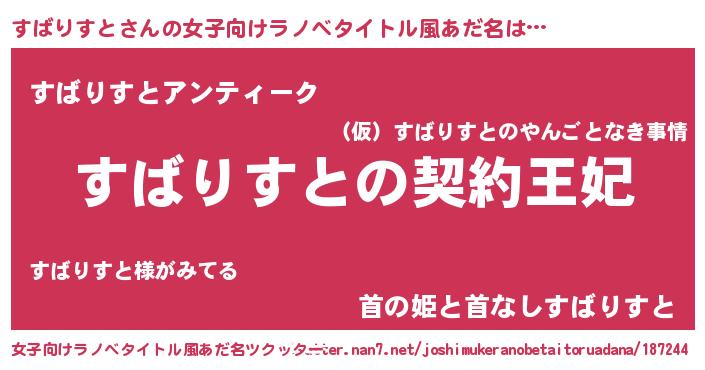 | 男性向けラノベタイトル風あだ名 | 『すばりすとという概念が存在しない退屈な世界 』 |