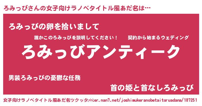 | 意味不明あだ名 | 『自称ろみっび』『ペロリンろみっび』 |