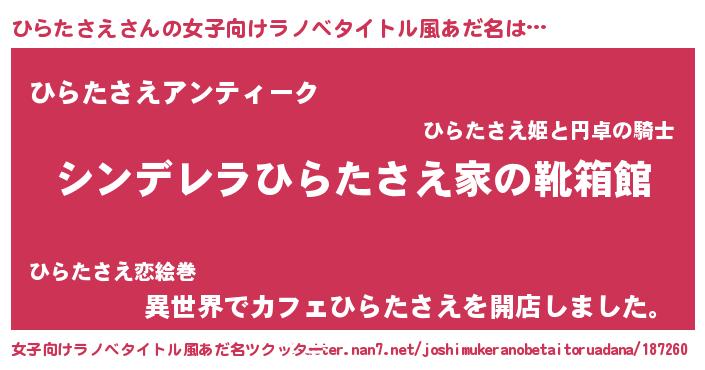 | ヘコむあだ名 | 『ひらたさえ(小並感)』『ひらもー』 |