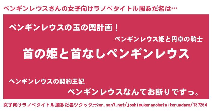 | 男性向けラノベタイトル風あだ名 | 『はたらくペンギンレウスさま!』 |
