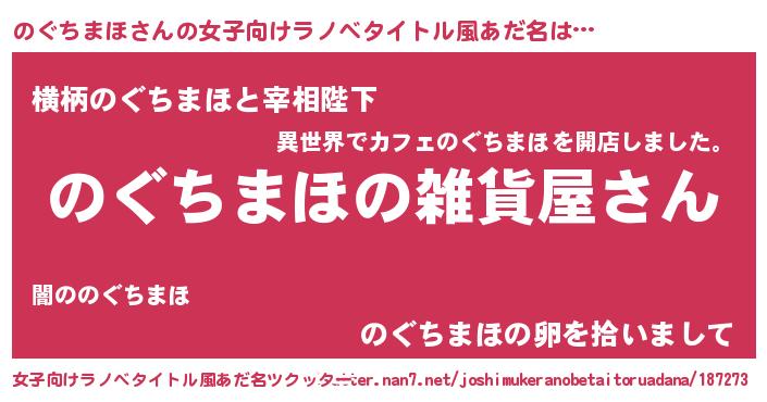 | 男性向けラノベタイトル風あだ名 | 『やはりのぐちまほの青春ラブコメはまちがっている 』 |