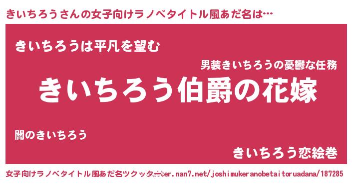 | 男性向けラノベタイトル風あだ名 | 『うちの娘の為ならば、俺はもしかしたらきいちろうも倒せるかもしれない。』 |