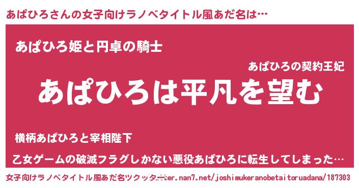 | 意味不明あだ名 | 『とにかく怪しいあぱひろ』 |