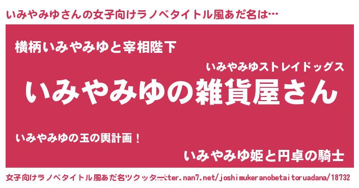 | 男性向けラノベタイトル風あだ名 | 『やはりいみやみゆの青春ラブコメはまちがっている 』 |