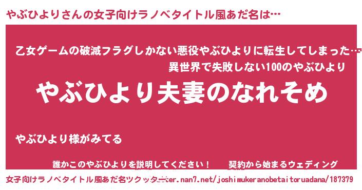 | ヘコむあだ名 | 『やぶもー』『やぶひより(笑)』 |