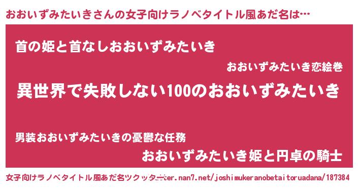 | 男性向けラノベタイトル風あだ名 | 『おおいずみたいきという概念が存在しない退屈な世界 』 |