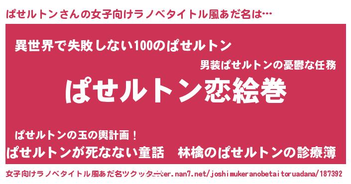 | ヘコむあだ名 | 『ぱせルトン(小並感)』『ぱせもー』 |