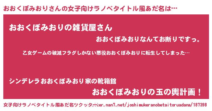 | 男性向けラノベタイトル風あだ名 | 『この素晴らしい世界におおくぼみおりを!』 |