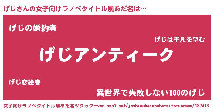 | 胡散臭い通販商品みたいなあだ名 | 『テレビで話題の高麗人参…その名も「げじ」』 |