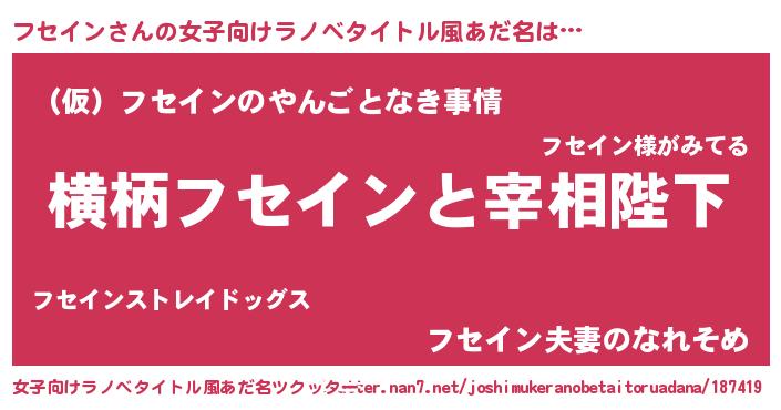 | 男性向けラノベタイトル風あだ名 | 『フセインに滅ぼされるだけの簡単なお仕事です』 |
