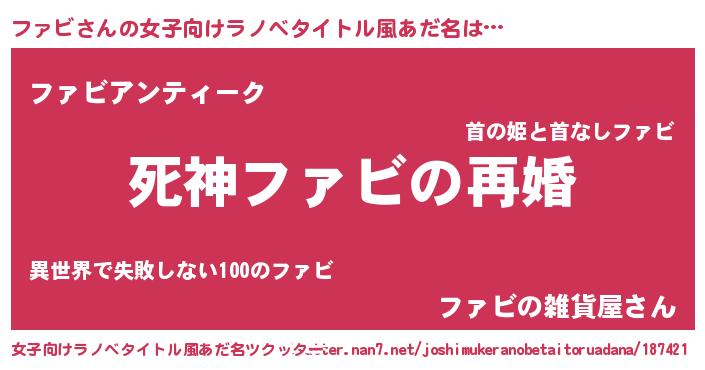 | 男性向けラノベタイトル風あだ名 | 『ノーゲーム・ノーファビ』 |