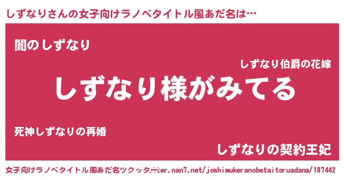 | 男性向けラノベタイトル風あだ名 | 『しずなりの嫁は女の子じゃないと思った?』 |