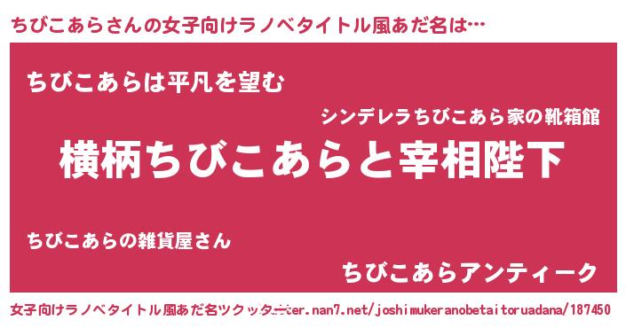 | 男性向けラノベタイトル風あだ名 | 『ちびこあらに滅ぼされるだけの簡単なお仕事です』 |