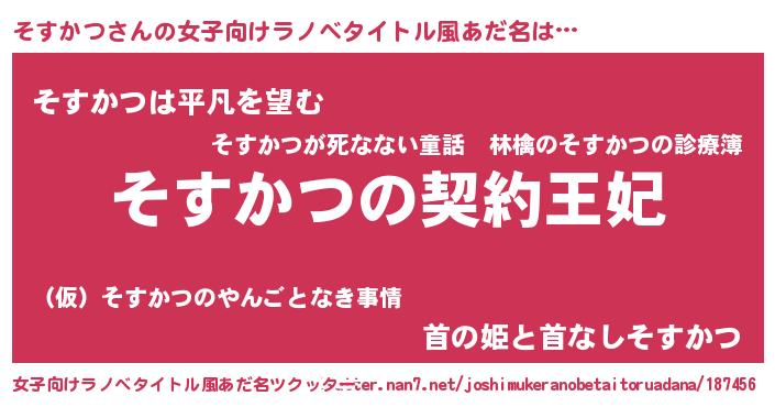 | 男性向けラノベタイトル風あだ名 | 『そすかつという概念が存在しない退屈な世界 』 |