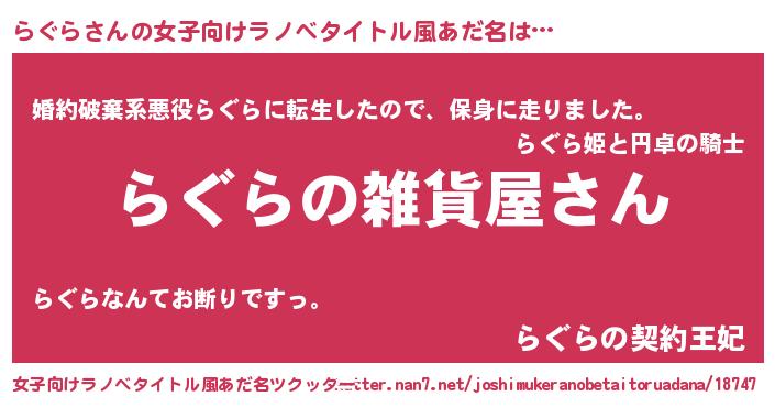 | 男性向けラノベタイトル風あだ名 | 『やはりらぐらの青春ラブコメはまちがっている 』 |