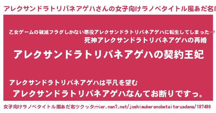 ファンタジー風あだ名 | 『アレディッシュ』『ヴァルアレーナ』 |