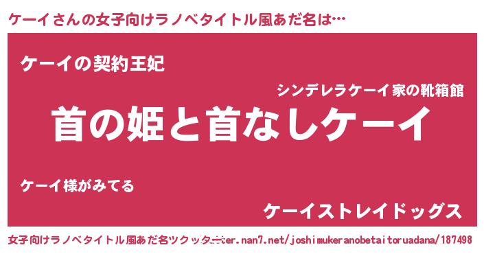 | ヘコむあだ名 | 『ケーイ(震え声)』『ケーぷりん』 |