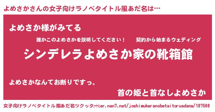 | ヒーロー風カッコイイあだ名 | 『黄金騎士ヨメ』『スーパーヨメサカ』 |