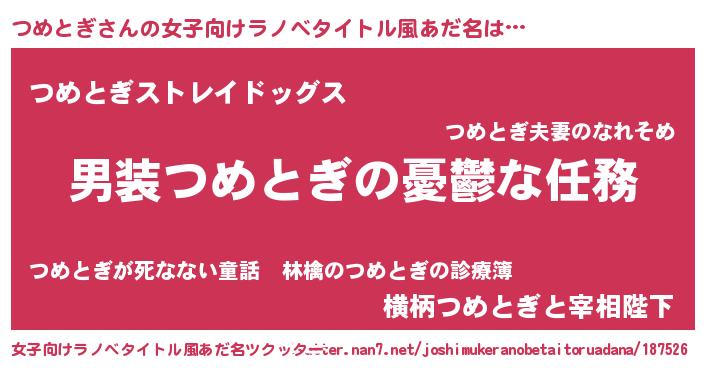 | 意味不明あだ名 | 『自称つめとぎ』『つめとぎフォーエバー』 |