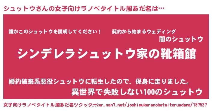 | 男性向けラノベタイトル風あだ名 | 『冴えないシュットウの育てかた』 |
