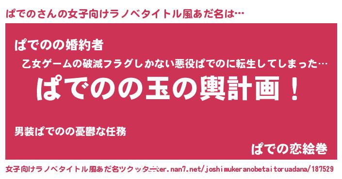 | 男性向けラノベタイトル風あだ名 | 『転生したらぱでのだった件』 |