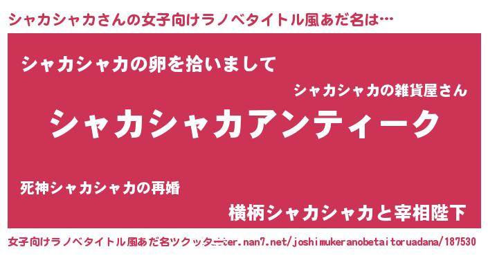 | 意味不明あだ名 | 『自称シャカシャカ』 |